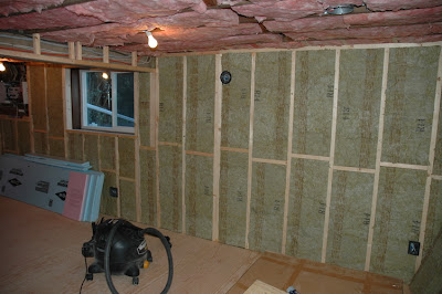 For now. We can't insulate some of the walls just yet because we won't be drywalling one side or the other for a while and there's something about not allowing exposed insulation in the building code. I dunno, something about fire hazards or something. Whatever.